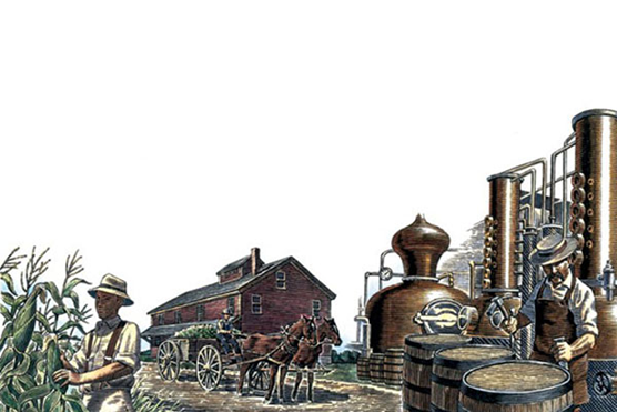 В XVII веке переселенцы из Ирландии и Шотландии начали делать виски в Новом Свете. Особенно заметного успеха добились винокуры графства Бурбон в штате Кентукки.