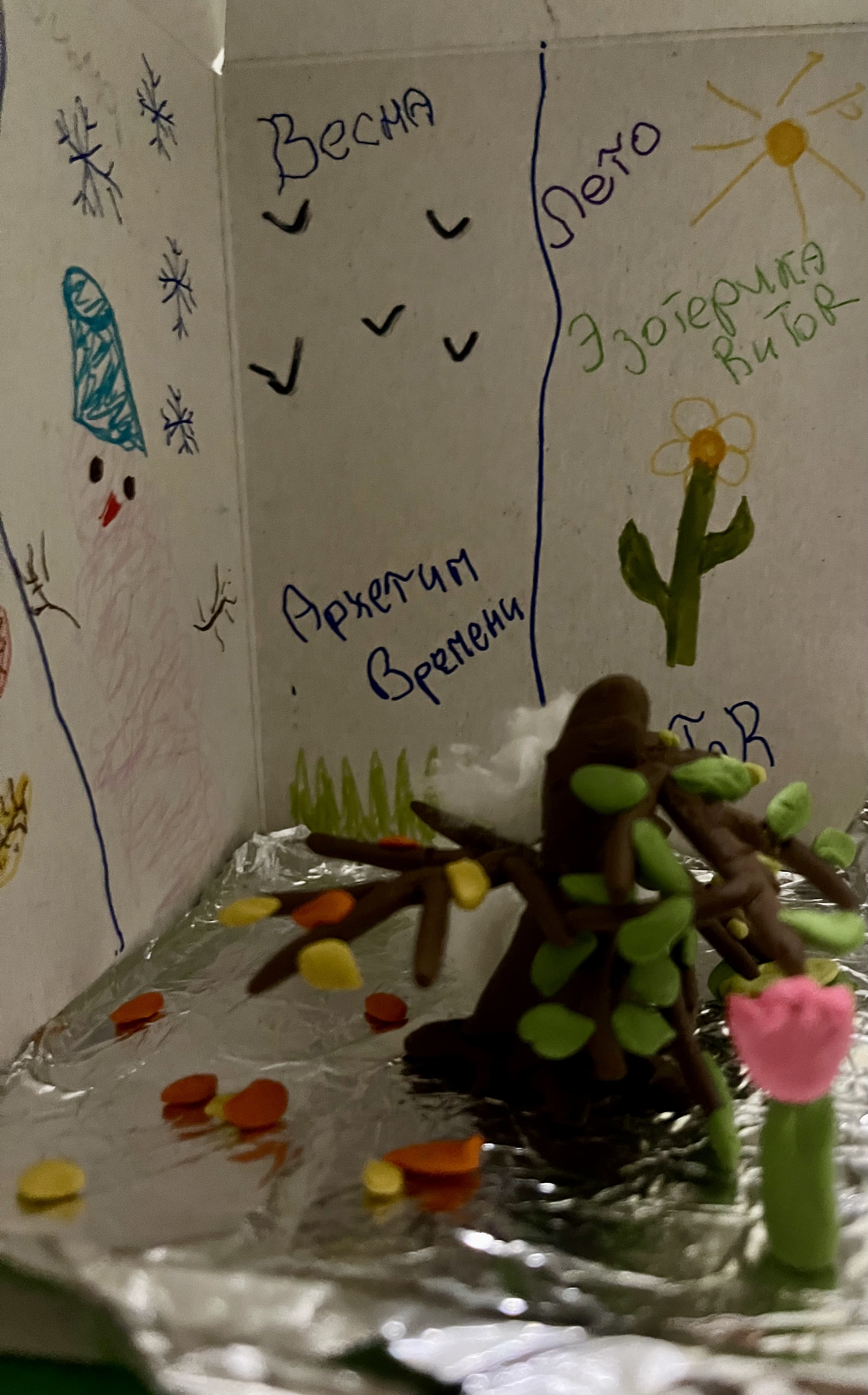 В этой фигуре запечатлен лик смерти, напоминающий череп или застывшую маску холода, однако руки бережно обхватывают живот. Это символ того, что весна не приходит извне, она вызревает внутри самой зимы. Чтобы родилось новое, старое должно не просто умереть, а стать питательной средой и созреть во чреве матери.