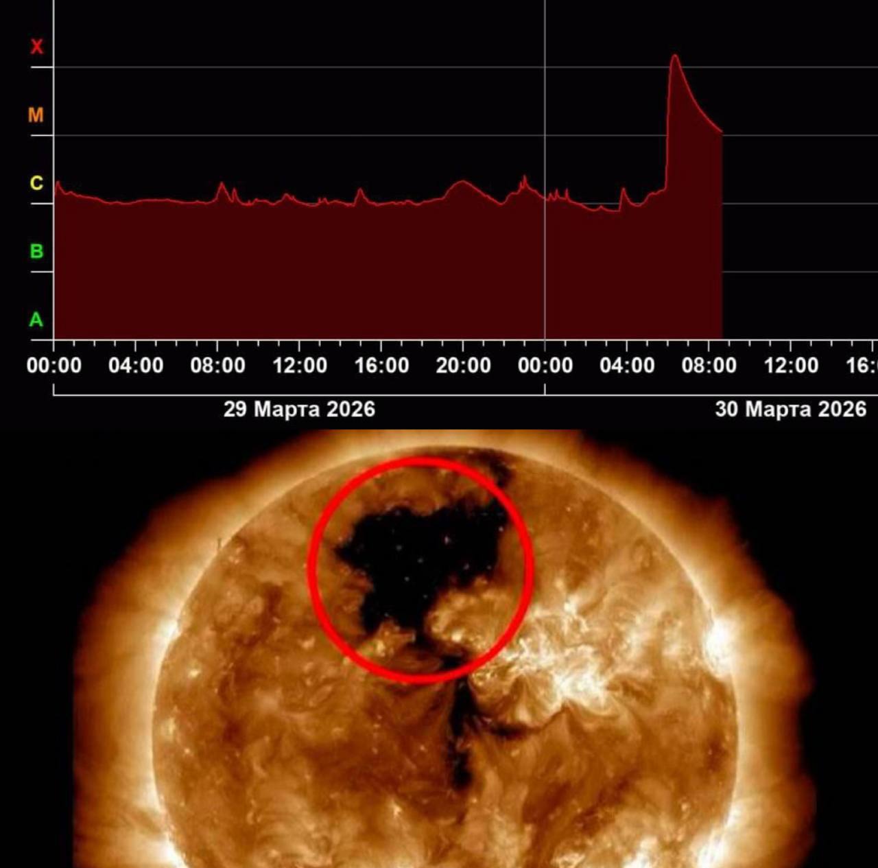 На Солнце произошла вспышка высшего класса X — выброс плазмы может достичь Земли уже 1–2 апреля.